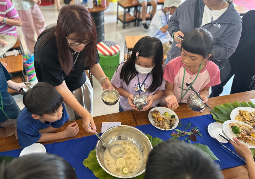 活動最後一場成果展,則邀請百位家長與孩子共同參與共餐時光。看著孩子們親手端上的料理,家長們不僅大讚美味,更感受到孩子的成長與學習成果。現場笑聲不斷、氣氛熱絡,充分展現食農教育所傳遞的人與人之間的情感交流與溫暖連結。
