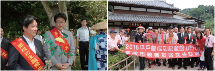 105年平戶鄭成功紀念館舉辦山門落成典禮,時任台南市長賴清德再度率團訪問平戶,與平戶市長一同參與揭牌典禮,這又是因鄭成功搭起的兩地情緣。108年台灣船仿製完成,為紀念鄭成功特別命名「臺灣成功號」。113年適逢鄭成功誕生400周年,台南跟平戶正式締結締盟,簽訂友好交流協定書,會中還請來荷治時期荷屬東印度公司的臺灣末代長官揆一(Frederick Coyett)的後代子孫一起見證。鄭成功的海洋精神,串起兩岸、日本平戶與荷蘭,成為台南走向國際,與世界交流的最好媒介。