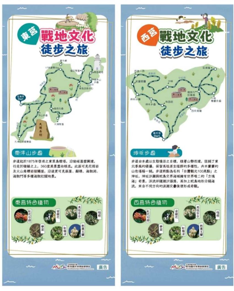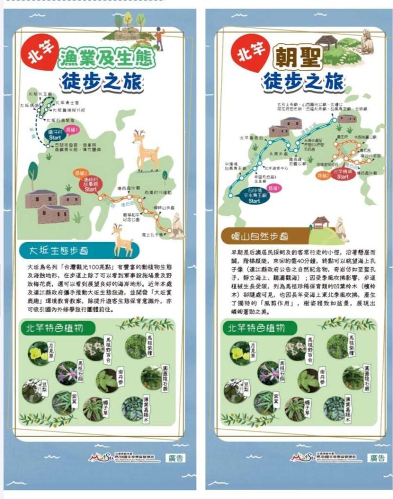 馬管處後續將舉辦「島嶼淨行-馬祖徒步慢旅」集章活動,旅客實地以徒步旅遊型態走訪馬祖各島,即可於旅途中集章兌換神秘好禮,無論是個人獨旅亦或是一群人相約同行,都是很好的選擇,示範活動報名詳情請關注馬管處FB官方粉絲團-馬祖愛趴GO。