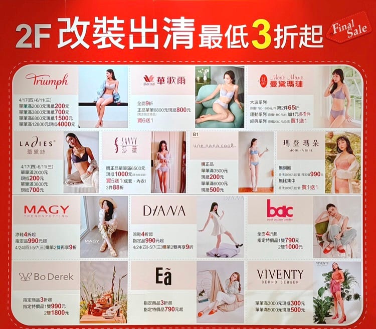Triumph與Ladies蕾黛絲:同步推出買四套送二套(成套銷售,價低商品計算折扣),新入會還能最高現抵760元