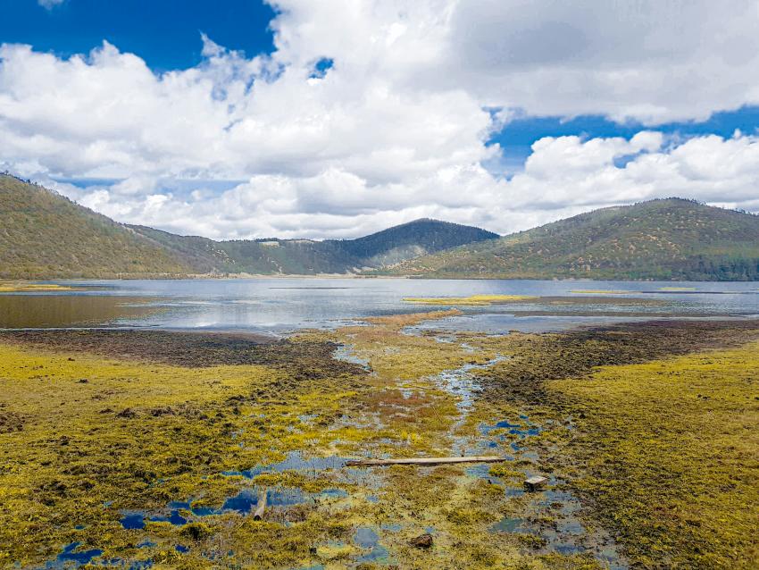 由於雨量充沛,當地植物生長茂密,植被以長苞冷杉為主,並依不同的海拔及陰陽坡方向,生長著杜鵑、箭竹、苔蘚、忍冬、雲杉、高山松、高山櫟、山楊、白樺等;動物資源方面,也有許多珍禽異獸,像是黑頸鶴、雲豹、猞猁、金貓、黑麂等。循著棧道走,欣賞廣闊無垠的高山和草原景致,還能坐船遊湖,觀賞有如奶酪的地質斷層構造湖。