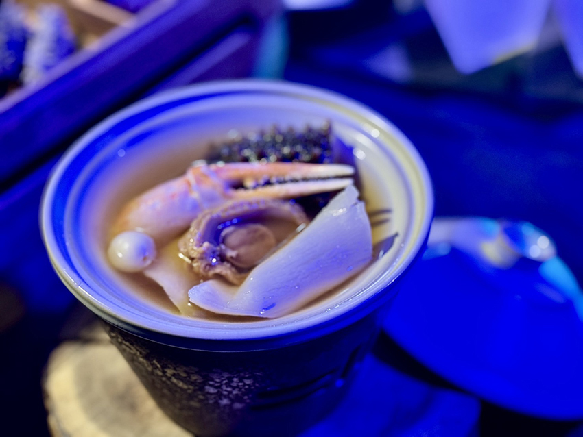 今晚的「蟹宴」用料澎湃且毫不手軟,除了「松葉蟹佛跳牆」、「大閘蟹小籠包」及「魚子蟹膏凍」之外,另有讓人垂涎三尺的「生拆膏蟹麻婆豆腐」、「脆炸鮮蟹蓋」、「蟹肉炸春捲」、「蟹粉糖心蛋」等等。晚宴透過270度環繞式投影,將貴賓帶入《詩經 小雅 鹿鳴》的文字篇章之中,在光影、藝術與美饌交織下,體驗一場融合中式之美與時尚之韻的年度盛宴。