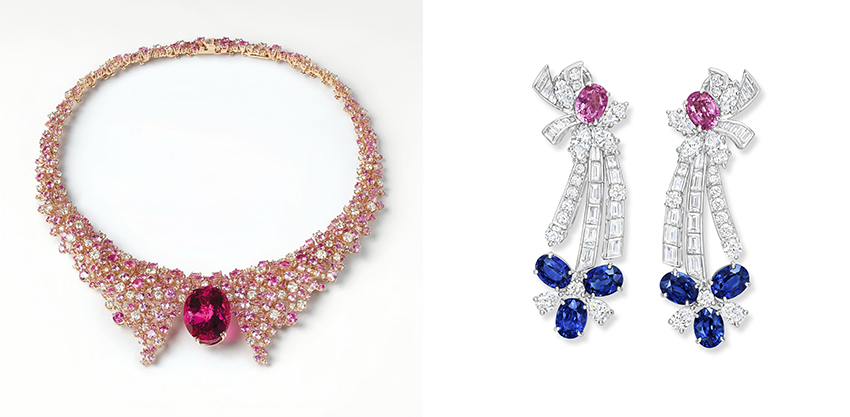 (右)海瑞溫斯頓 頂級珠寶系列 藍寶石、粉紅藍寶石與鑽石耳環_約價$5,750,000