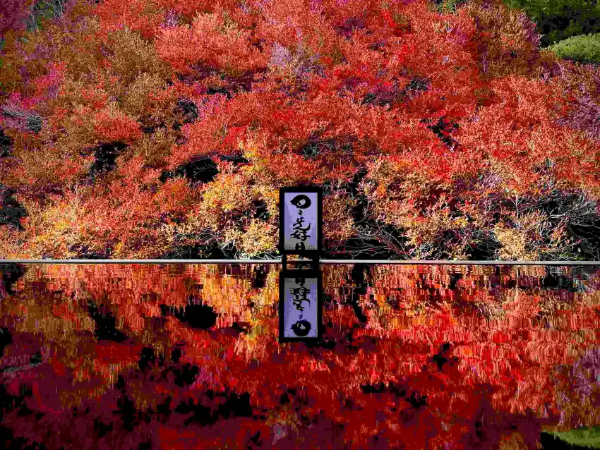 宗鏡寺又名「澤庵寺」,是高僧澤庵和尚的故鄉之寺。寺院以澤庵親自設計的枯山水庭園聞名,白砂與石景間點綴著紅葉,秋陽灑落、樹影婆娑,構築出深邃禪意。旅客可在此靜坐抄經,體驗靜謐與自然共鳴的片刻。寺內亦保存「夢見之鐘」等文物,是兼具歷史與靈性的賞楓名勝。