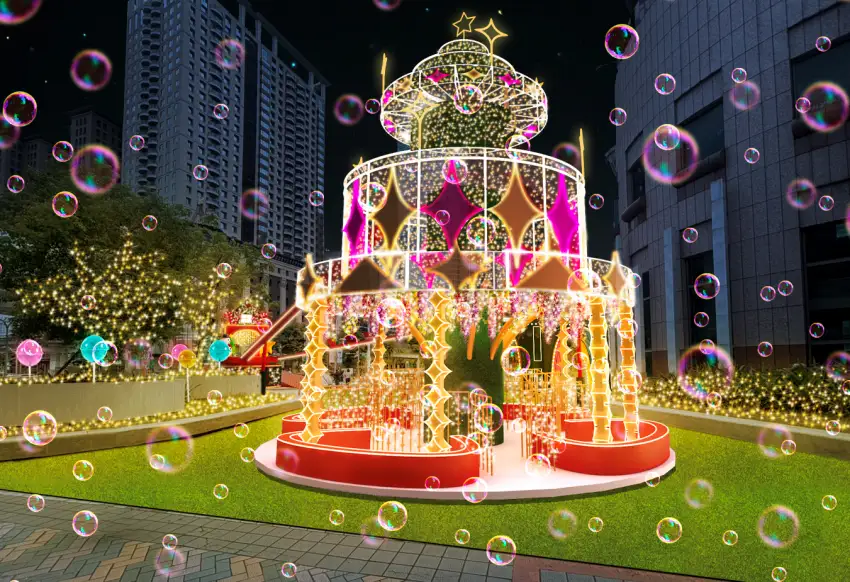 在閃耀的燈海中緩緩轉動,木馬們披上璀璨星光,燈飾隨旋律律動閃爍,營造出浪漫而奇幻的氛圍。無論是孩童的天真笑容,還是大人心底的童年記憶,都能在此被重新點亮!坐上木馬,就像乘著星光啟程,一起奔向屬於耶誕的幸福旅程。