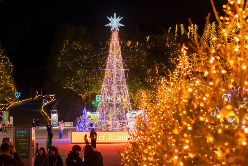 庄原市「國立備北丘陵公園」的冬季點燈,已是廣島深具儀式感的年終敘事。今年歡慶開園 30 周年,「中之廣場」以「禮物」為主題,將華麗燈飾化為對所有旅人的獻禮。園區並與藝術團體 MIRRORBOWLER 合作,於「花之廣場」創作出獨一無二的「鏡球 夢之新世界」,讓光線透過鏡面折射,交織出目眩神迷、充滿幻想力的世界。每週六晚上加碼施放的璀璨煙火,是夜空中情感的最高潮。