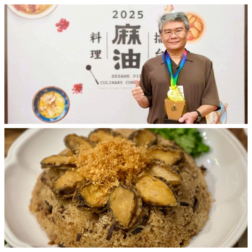 今年廣受矚目的麻油鮑豚飯,以鮑魚、台灣黑豬頸肉入菜,結合雲林黑麻油的醇厚底韻,呈現海陸奢華與溫補養生兼具的特色。主廚以道道繁複工序打造美味層次:溫火養香、滷水入味、干貝雙工序處理、乾炒糯米、肉品高溫封鮮、回蒸定型、職人擺盤呈現——將傳統麻油飯昇華為宴席級的精緻主食。