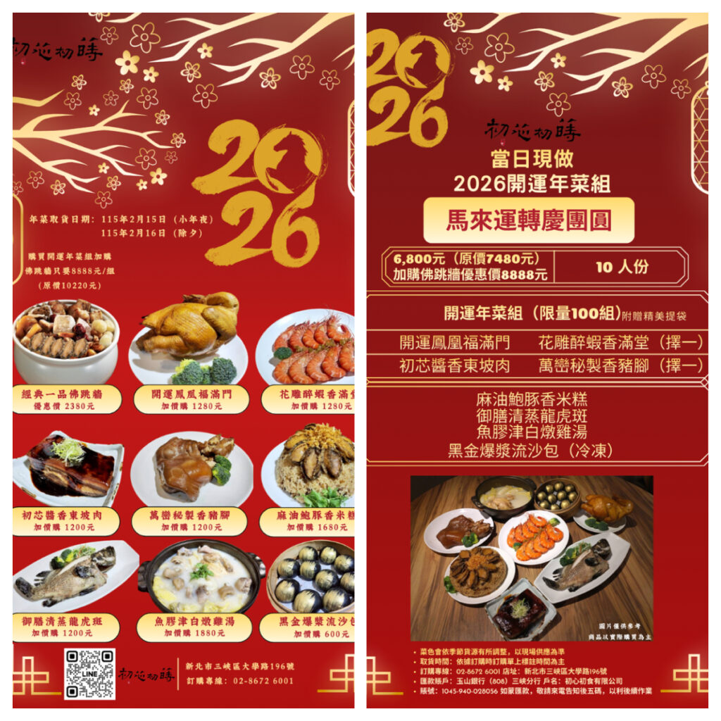 迎接春節團圓時刻,初芯初蒔推出一系列加量不加價的年節料理,不僅升級至 10人份,更考量國人「雞、豬、魚」齊備的年節習俗,提供祭祖與團圓皆適合的完整菜單。