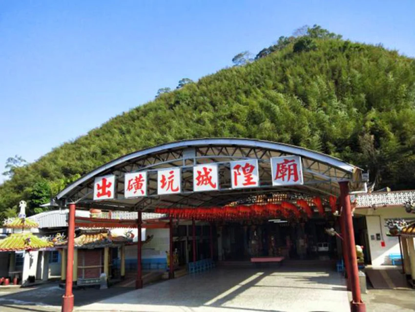 離油礦陳列館不遠的出磺坑城隍宮,是在地重要信仰中心,昔日石油開採工作辛勞又具危險性,1878年隘勇邱阿玉便自廣東梅縣白泥湖公請城隍爺分靈,安座於今日廟址,守護地方平安。至日治時期,由於日本石油株式會社用地甚廣,協商後,將城隍爺遷至山頂,由盪耙崠的邱家「忠實第」信奉,沒想到遷祀後地方不平靜,災難頻傳,在村民期待下,邱阿玉再度恭請城隍老爺安座於礦場東區現址,竟神奇地平安無事,此事更突顯城隍信仰對在地的重要性。