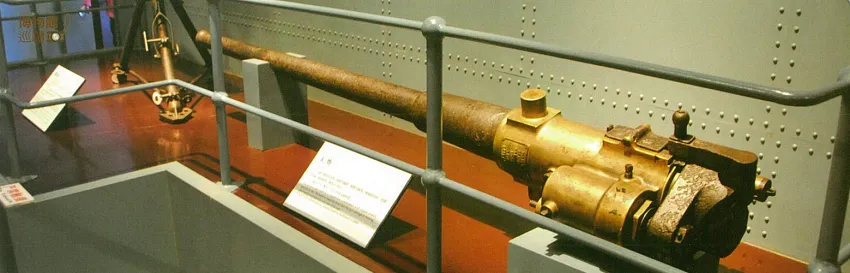 炮身尚完好的火炮原本是架設在船上左右舷的邊炮,炮尾是銅質、炮筒是鐵質,為1898年法國製造的37毫米火炮。