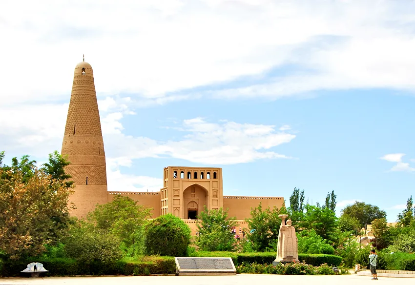 於清乾隆年間落成的蘇公塔,又名額敏塔,是由當時吐魯番郡王額敏和卓於高齡83歲時率子修建,以此表達對清王朝的感恩,以及對於伊斯蘭教真主阿拉的虔誠信仰,塔前還有一座額敏和卓本人的雕像。蘇公塔是目前吐魯番地區規模最大,且仍在運作中的清真寺,因此遊客來此須遵從伊斯蘭教規定,不可大聲喧嘩。造型獨特的塔身呈圓錐狀,高37公尺,外觀利用多種幾何式花紋燒磚堆砌而成、精巧優雅,內部大廳則仍維持清真寺一貫的簡樸隆重。